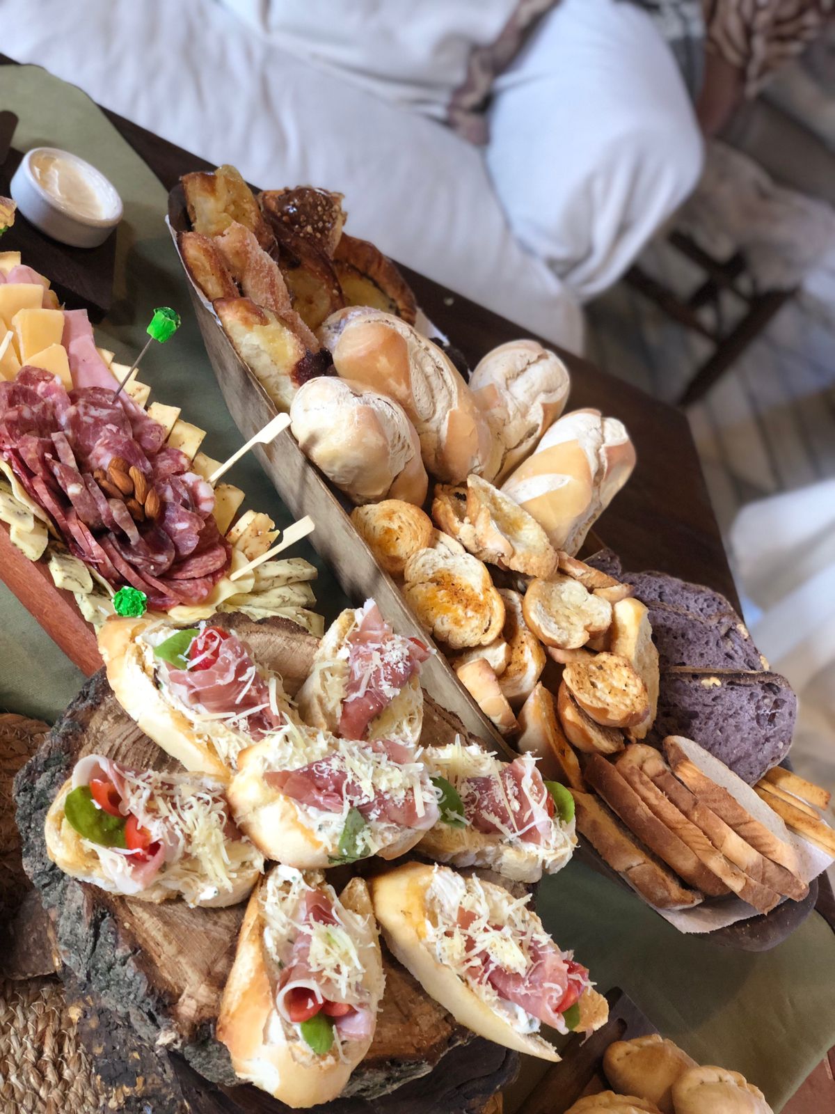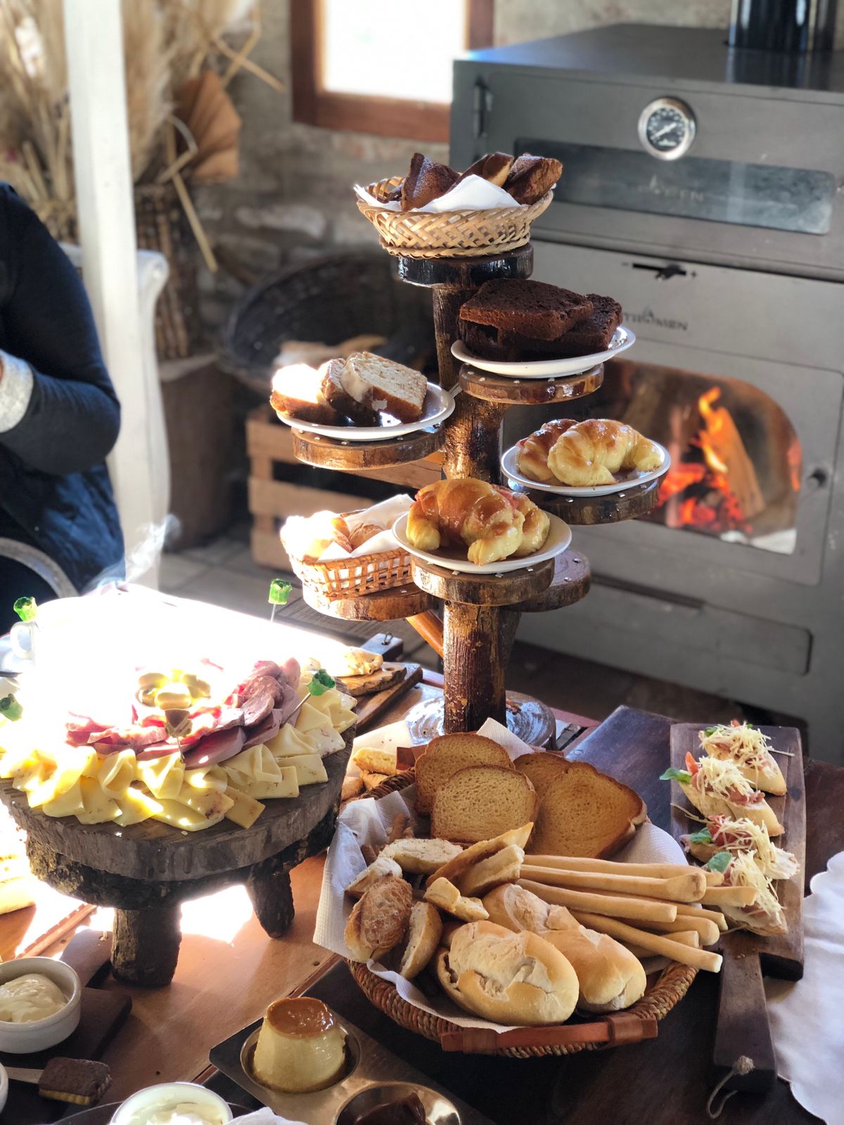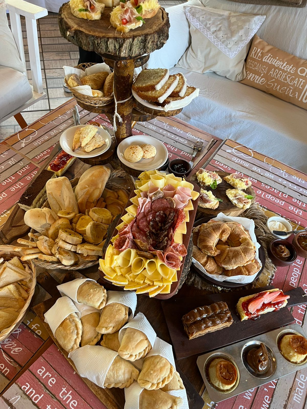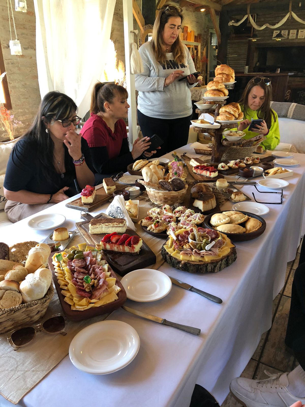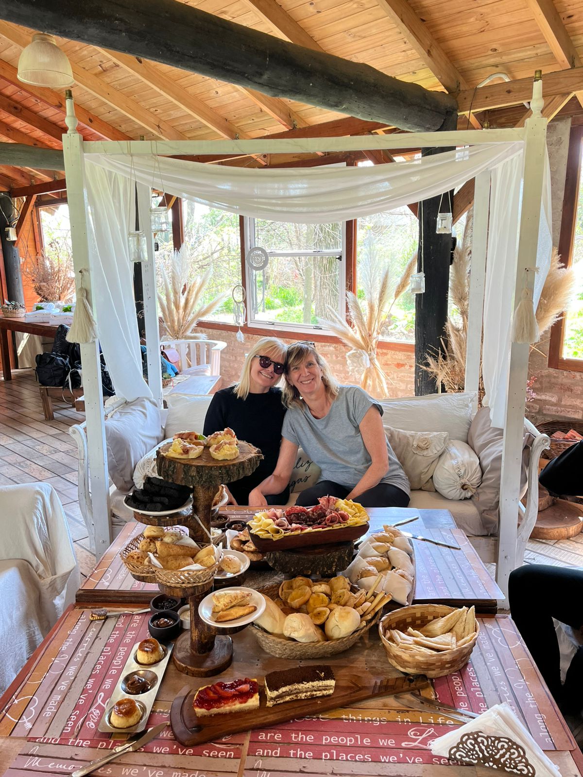 La propuesta de brunch de campo es super ABUNDANTE. También, durante la estadía, podrás disfrutar de infusiones libres: café, leche, variedad de tés, jugos frutales y yogures con cereales.
